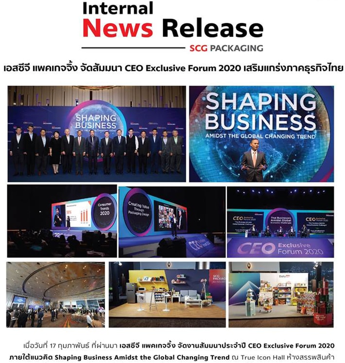 研讨会的详情可以通过YouTube频道观看,视频标题为“SCG Packaging – CEO Exclusive Forum 2020; SHAPING BUSINESS”。